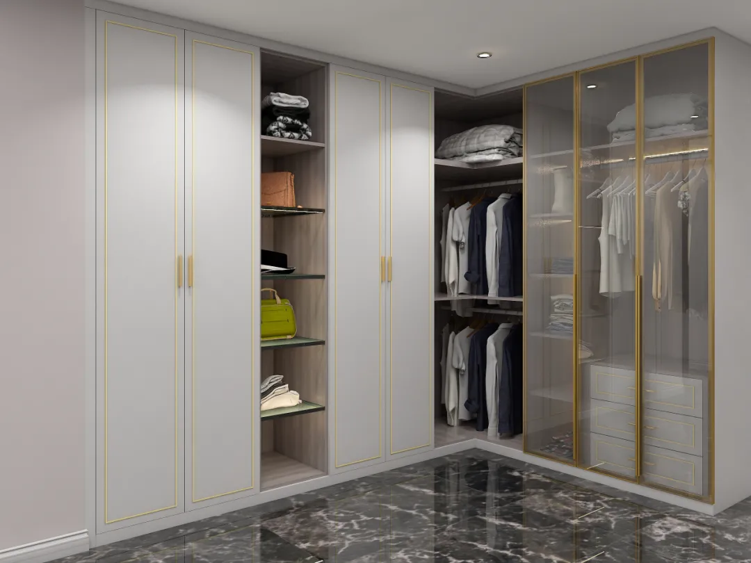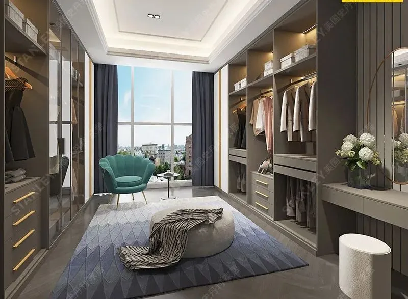 金色象征着豪华,这款衣柜的拉手都采用金色设计,完美诠释了成功人士家庭的华丽与高雅,整个空间布置的端庄大气,非常有范儿。