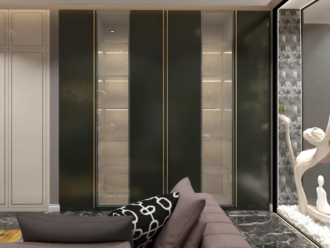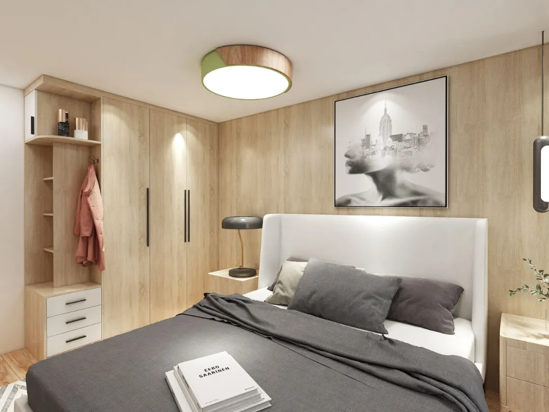 但如果怕空间会太压抑的话,可以用绿植,或低饱和度彩色点缀。