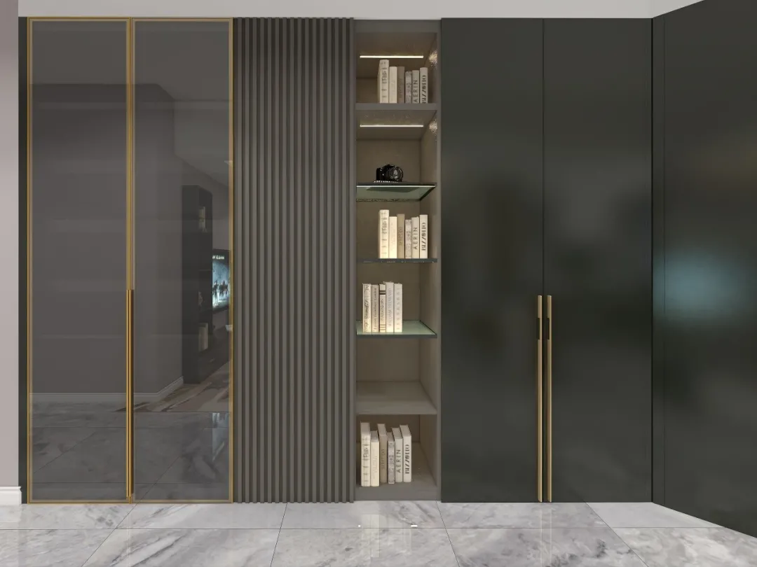 橄榄绿色系受欢迎程度不用再说,绿色是其中比较独特的。它有森林感,也有时尚感,跟浅灰搭配,和玻璃门搭配堪称一绝。