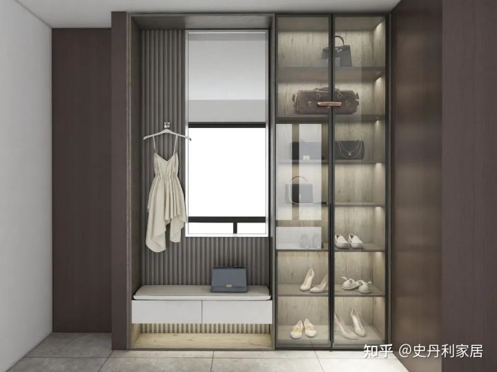 玄关柜,是开门的第一道风景,给家带来更多便利和舒适;右下方悬空设计,方便换鞋,玻璃门鞋柜精致大方,演绎极致的现代轻奢。